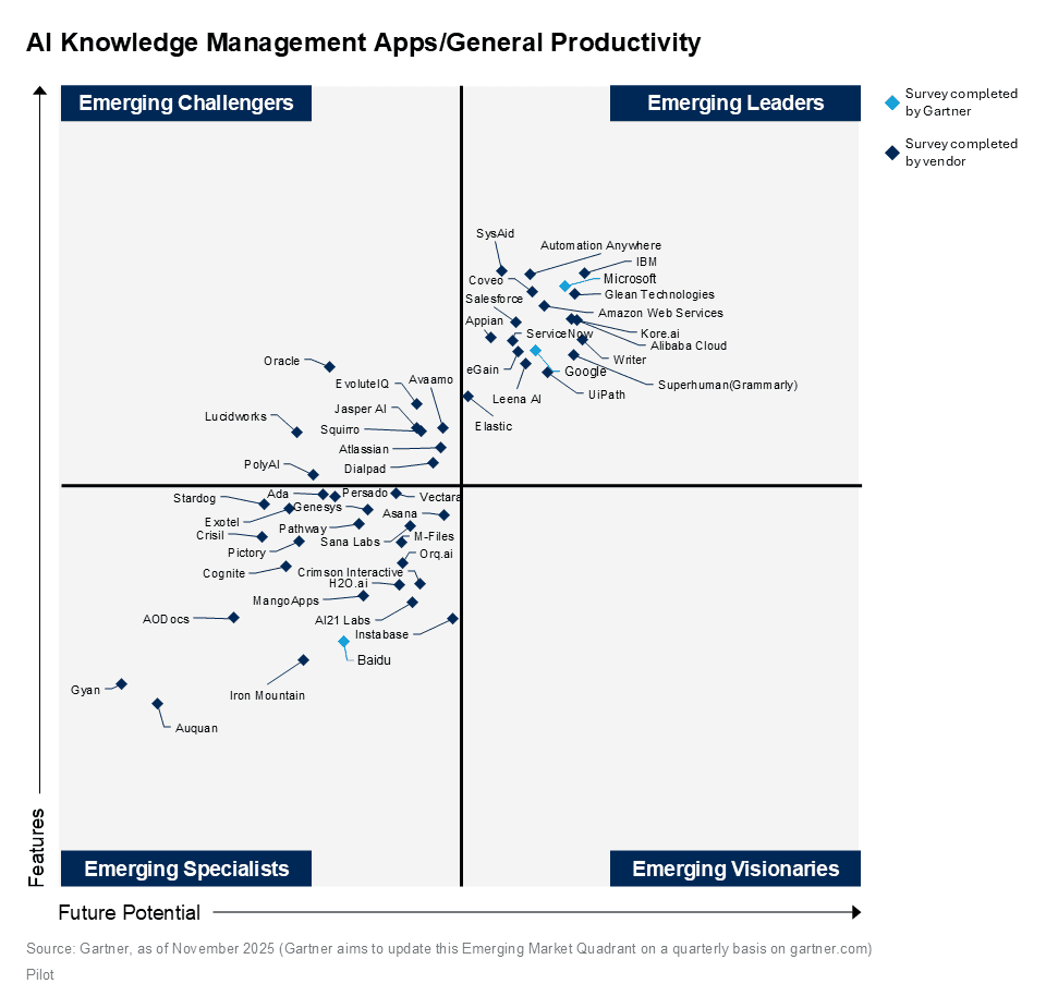 Recognized in the Emerging Specialists Quadrant for AI Knowledge Management Apps & General Productivity
