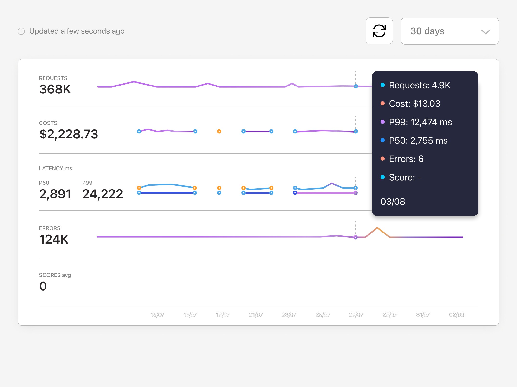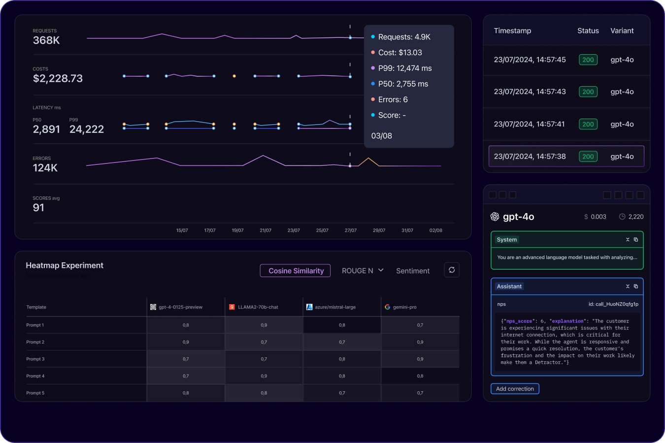 Get granular insight into the cost, latency, and efficiency of LLM apps & agents in real time.